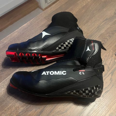 Atomic Pro C1 langrennsstøvler i str 44zStøvlene er svarte med hvit såle og snøring med glidelåslukking over vristen. Skiskoene er lite brukt.