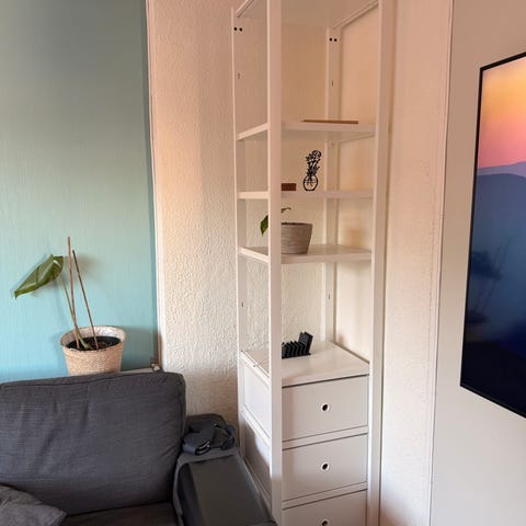 Hei jeg holder på å rydde, vaske, kaste og selge inne i et ferie hus. Jeg har kvittet meg med en vegg med bøker som aldri vil bli lest mere . Jeg selger derfor en vegg med hyller.