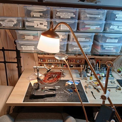 Et godt brukt eksemplar av Hørgård fluesnelle, som passer bra til stangen, følger med. Snella fungerer utmerket, er nysmurt og med knarr.