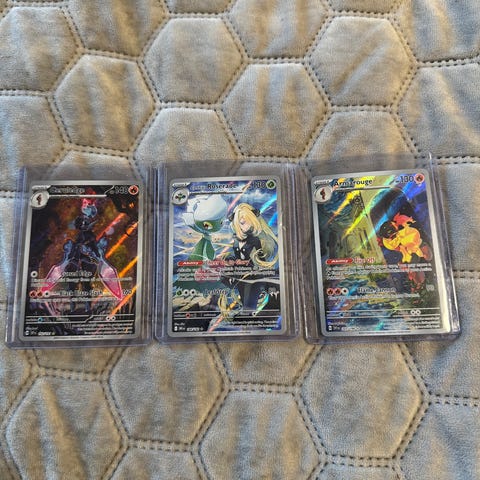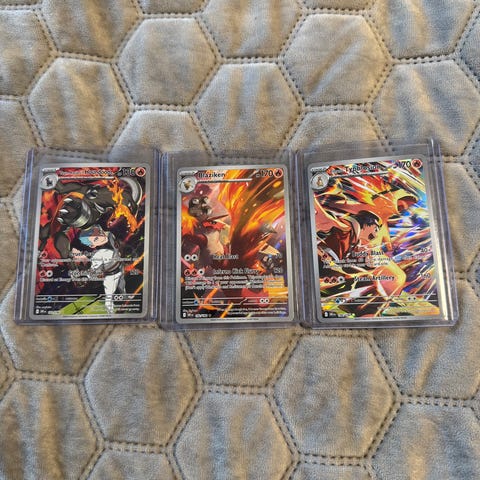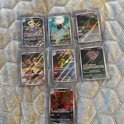 Alt selges samlet og selges som de er. Scizor kortet er litt skadet.