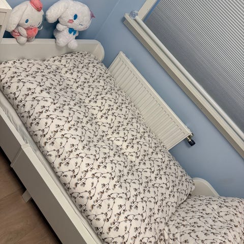 Kul sofa i slitesterkt dongeri stoff selges av jente