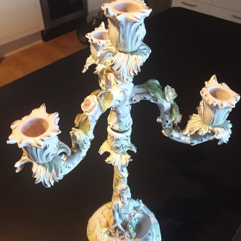 Lysestake i porselen G&C antikk,gi bud