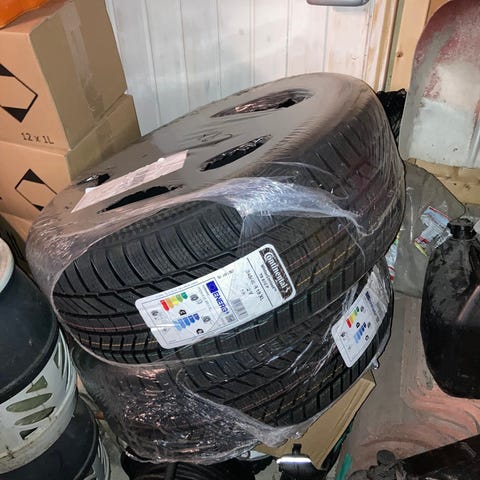 Dekka kommer fra en bil som er solgt. De sitter for øyeblikket på felger men blir demontert snart!