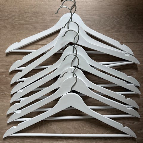 24 stk. hvite kleshengere med en liten bøy, så klærne henger pent.