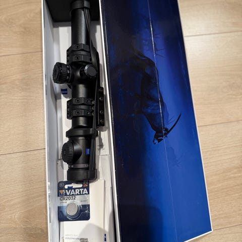 Zeiss Diavari C 3-9x36 MC kikkertsikte med variabel forstørrelse fra 3x til 9x og objektivdiameter på 36 mm. Kikkertsiktet er utstyrt med multicoating (MC) for bedre lysgjennomgang og klarere bilde. Leveres med original emballasje. Forstørrelse fra 3-9 er treg/hard. Men funker som den skal. Kanskje grunnet stivnet fett i kikkerten. Har ligget i original eske siden den ble kjøpt, har aldri vært montert !