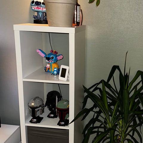 Rosa ikea mostorp vegghylle fra utgått sortemang.