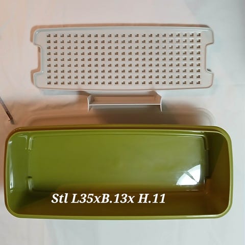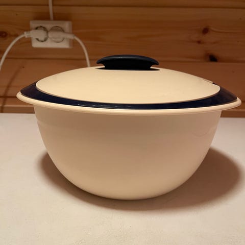 Tupperware Serveringsfat i plast med lokk og bærehåndtak.