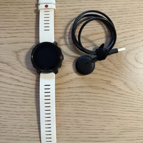 Kjøpt brukt av meg. Pent brukt og funker som den skal. Selges med ladebrikke og ekstra reimer i forskjellig størrelse.