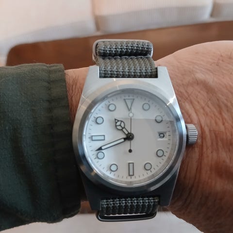Denne kom som en del av en større samling. Klokka lar seg trekke og går, men jeg har ingen oversikt over hverken nøyaktighet eller gangreserve. Selges derfor uten noen form for garanti.