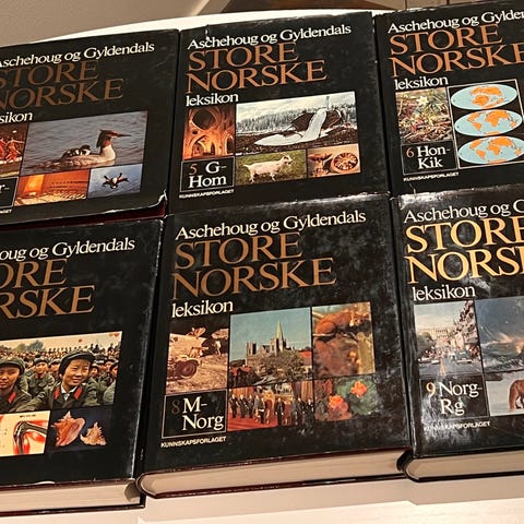 Aschehoug og Gyldendals Store norske leksikon bokverk.