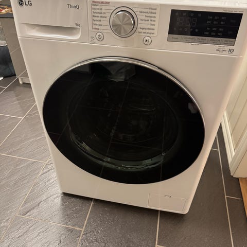 LG P4Y9LAP2W frontmatet vaskemaskin i hvit utførelse selges. Maskinen har frontåpning med stor rund dør og rustfri trommel. Betjeningspanelet består av dreiehjul og knapper på oversiden foran. Egnet for plassering frittstående på gulv i vaskerom, bad eller annet egnet rom med avløp og vanninntak. Vaskemaskinen har autodosering av vaskemidler og har appstyring. Vaskemaskinen fremstår som meget pen og veldig lite brukt.