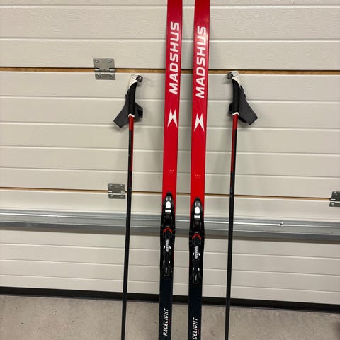 Madshus langrenn felleski. Lengde 182 med tilhørende staver. Klassiske ski med bindingssystem montert på skiene. Skiene har hvit hovedfarge med detaljer i andre farger. Staver i matchende lengde følger med. Egnet til klassisk langrenn på preparerte løyper. Støvler Fischer Comfort størrelse 38•
