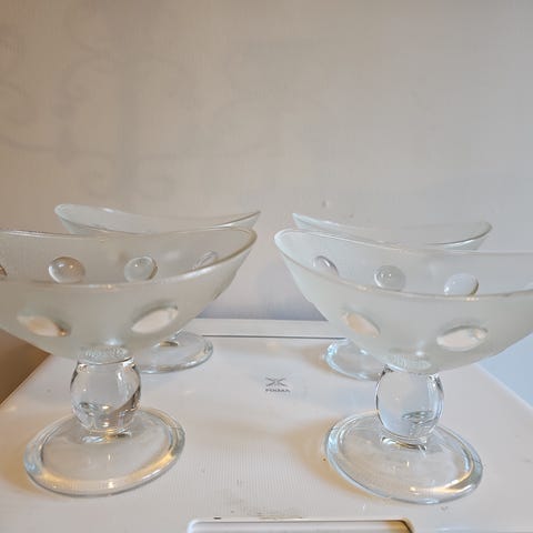 Én dessertbolle/serveringsskål og åtte små dessertskåler