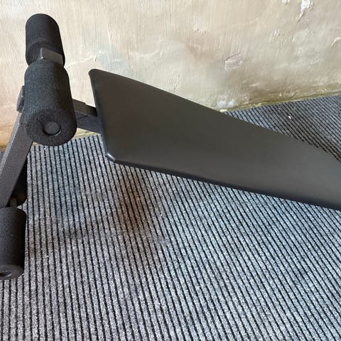 Benken har ramme i tre og derfor ganske lett å flytte på. Likevel meget stabil.