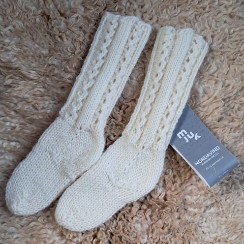 Helt nye strikkede raggsokker (tykk, strikket med pinner 3,5). Den måler ca 11 cm se bilde nr 2.