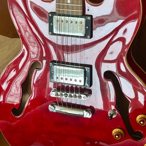 Utrolig flott gitar. Tipp topp Japansk kvalitet. Unik gitar i rette forstand. Gitaren er ubrukt (NOS), og en av topp-modellene i tillegg. Gibson '60 335 reissue til 1/3 av prisen.