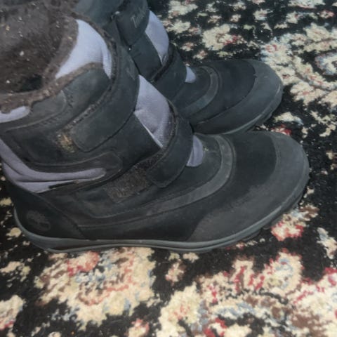 Timberland vinterstøvler for barn. Støvlene er i mørk farge med borrelåslukking foran. De har mykt, fôret skaft for ekstra varme og komfort. Grov såle gir godt grep på glatt underlag. Passer til bruk i kaldt vær og vinterforhold.