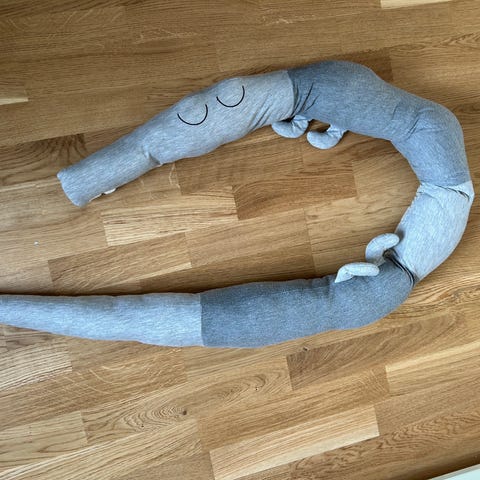 Grå/hvit sengeslange/kant. Helt ny ikke brukt kun pakket opp. Lengde 2,15. Selges grunnet feil kjøp. Kommer fra røyk og dyrefritt hjem.