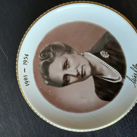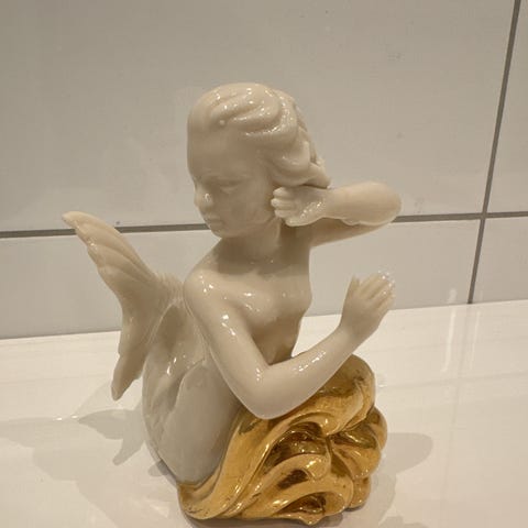 Liten sprekk i belegget som vist på bildet, ellers hel og pen