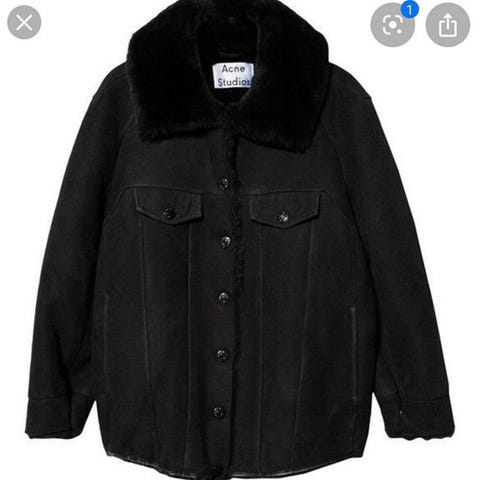 Meta shearling jakke fra Acne Studios i størrelse 36. Knappelukking foran, to brystlommer med klaff, samt åpne lommer i siden. Supervarm og verdens beste jakke, selges da den er akkurat litt for snau til at jeg bruker den nok. En så digg jakke fortjener å bli brukt masse!