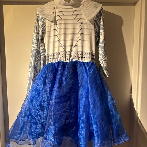 Fever Alice kostyme for dame. Kostymet består av en kort kjole i blå og hvit med snøredetaljer foran og puffede ermer. Designet er inspirert av klassisk eventyrstil, og passer til temafester, karneval eller utkledningsanledninger. Pakken inneholder kjole og hårbøyle. Fremstår som nytt/pent brukt for utenom noen sminke flekker vist på bilde.