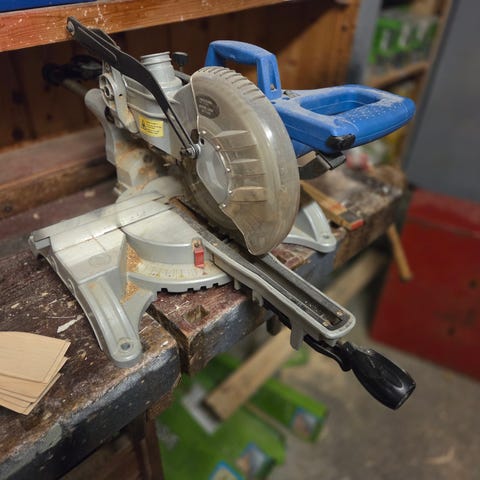 Stayer kapp- og gjærsag i rød farge. Sagen har rund sagbladskive montert på en dreibar bordplate for kapp- og gjærsnitt. Egnet til kapping av treverk og lignende materialer. Elektrisk motor plassert på siden av sagen. Kompakt konstruksjon som kan brukes på verksted, garasje eller byggeplass der det er behov for presise kappsnitt.