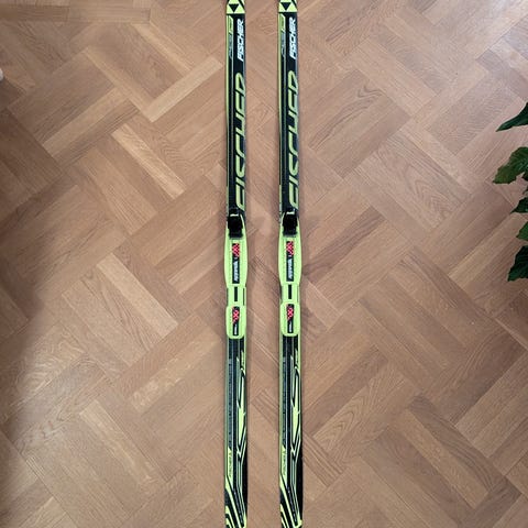 150cm lange Fischer Sprint langrennski med Rottefella binding.
