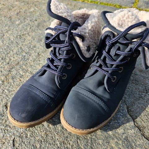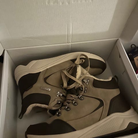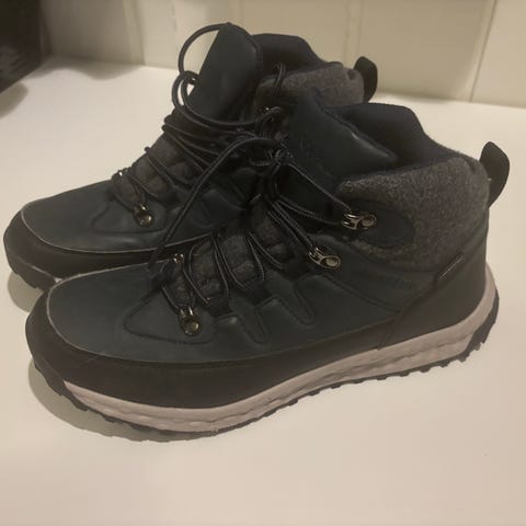 Jean Paul støvler i størrelse 42. Modellen er ankelhøy med snøring foran. Skoene er i blå farge med lys såle og polstret innside for økt komfort. Egner seg som hverdagsstøvler i overgangssesong og mildere vinterdager. Brukt kun én gang pga for små i størrelsen.