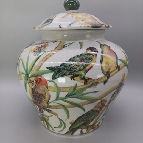 Selger to håndlagde keramikkpotter med dekor, som vist på bildet. Klassisk uttrykk og solid utførelse.