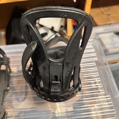 Nitro Vertical spark snowboardbindinger i svart i str m(sko str 40-43). Bindingene har høye hælstøtter, tå- og ankelstropp med justerbare spenner, samt baseplate med flere monteringspunkter. Passer til bruk på splitboard der man ønsker faste og støttende bindinger. Farge: svart.