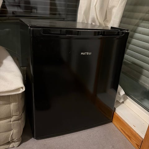 Matsui kjøleskap bordmodell. Kompakt kjøleskap egnet for mindre kjøkken, hybel eller kontor. Innvendig har skapet en liten fryseboks øverst, en hylle i skapet samt oppbevaringsrom i døren for flasker og mindre varer. Kjøleskapet har kompressor med kjølemedium basert på cyclopentane, og er beregnet for frittstående plassering på gulv eller benk. Passer til lagring av mat- og drikkevarer i husholdning eller tilsvarende miljøer.