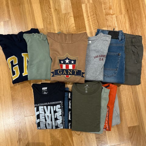 Klespakke til gutt med hverdags og treningsklær . Jack and Jones, Zara, HM, Cubus, umbro. Noe er godt brukt annet lite brukt. 1 treningsbukse, jeans, 10 gensere. Sokker T-skjorte og boksere legges med gratis