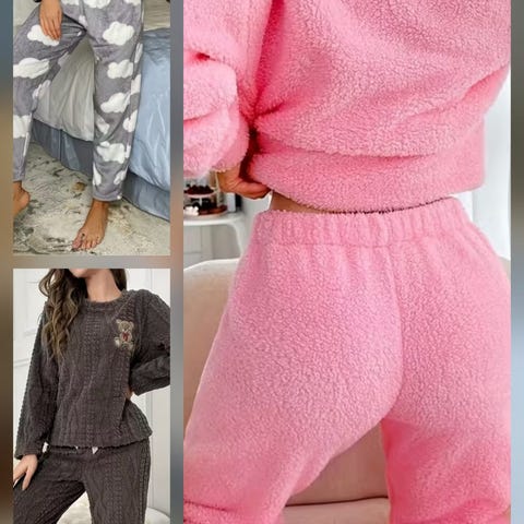 Vinterpysjamassett for kvinner, med veldig myk rosa fleecebluse og bukser i samme farge, med Hello Kitty-mønster og elastisk midje. Den har rosa krage og strikk ved anklene.