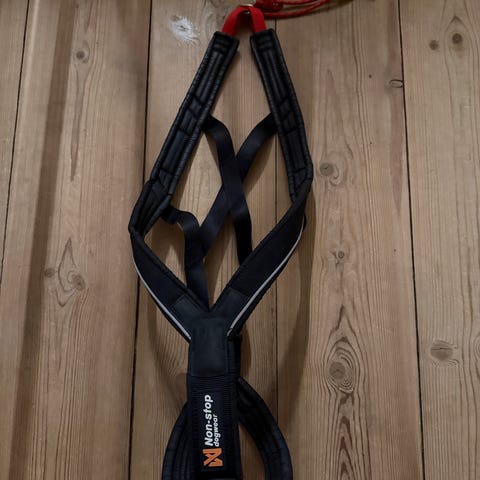Non-stop Dogwear Combined Harness hundesele i rød farge. Selemodell beregnet for hund, med polstrede remmer og flere justeringspunkter. Leveres i størrelse 5 og 6, egnet for trekk og aktivitet der hunden skal gå i sele. Selen har festepunkter og reimer som fordeler belastningen over hundens kropp for mer stabilitet under bruk.