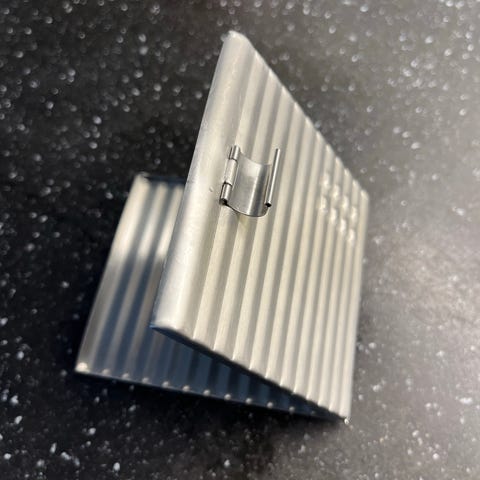 Sigaretui i brunt krokodillemønstret skinn med sølv besetning. To deler. Max størrelse diameter sigar 15-16 mm. Plass til 5 stk omtrent. Passer til panatelas eller mini coronas f.eks. Lengde kan justeres. Kan sende som brev etter forskuddsbetaling på