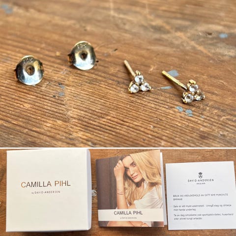 Camilla Pihl 925 sølv gullbelagt ørepynt med krystall -som nytt