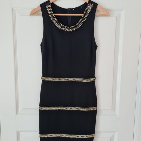 Selger en ubetydelig brukt kjole (tror jeg kun har brukt den én gang), i str S evt liten M, farge blå. Kan skimte et snev av lilla skjær i den.