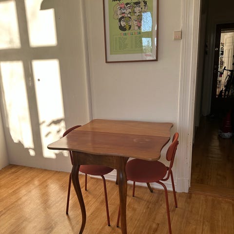 Passer fint som ekstra stoler, til hytte, verksted eller som et rimelig alternativ til kjøkken/spisestue.