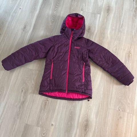 Bergans dunjakke for dame i størrelse S. Jakken er lilla og fylt med dun, noe som gir god isolasjon. Den har høy krage med mykt innvendig materiale, gjennomgående glidelås foran og glidelåslommer i sidene. Passer som ytterjakke til hverdagsbruk og ulike utendørsaktiviteter i kjøligere vær.