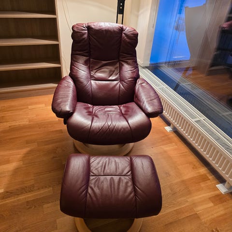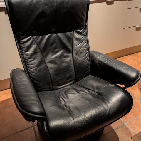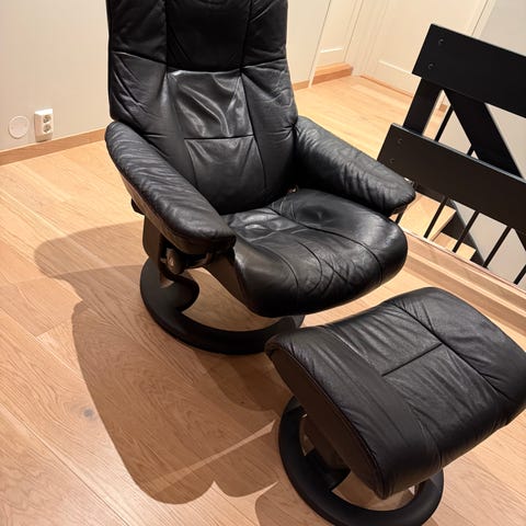Endret pris! Pent bruk Ekornes stressless, sannsynligvis wing, ny fra ca 2018/19. Evt recliner. Svart skinn.