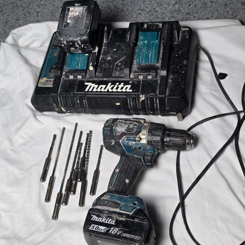 DCD708P2T: Komplett sett med 2x 5,0 Ah batterier, lader og koffert, med priser rundt 2 919 kr