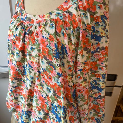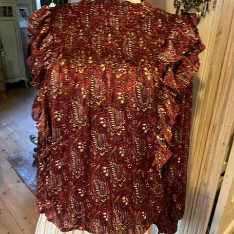 💗BURGUNDER/ROSA BLOMSTERET BLUSE,STR.44/46