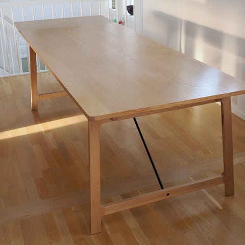 Bolia spisebord med design av Michael H. Nielsen. Spisebordet har rektangulær bordplate i hvit utførelse og rette ben i lyst tre. Bordet har en todelt plate med hengsler i midten, som gjør det mulig å folde ut eller sammen etter behov. Passer som spisebord eller arbeidsbord i kjøkken eller stue, og gir plass til flere stoler langs sidene. Nøytral farge og enkelt formspråk gjør at bordet kan kombineres med ulike typer interiør og stoler.