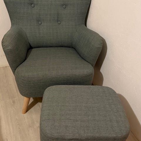 Fin lys grønn lenestol selges. Jeg kjøpte to, og har dessverre bare plass til den ene.