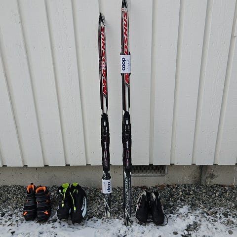 Skiene er normalt brukt og har vanlige bruksspor, men er fullt funksjonelle og har fortsatt mange skiturer igjen.