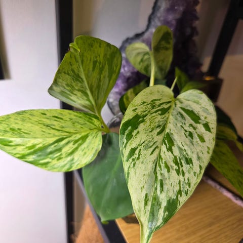 Selger stiklinger av Philodendron Lemon Lime. En vakker plante med nærmest neongrønn farge på bladene.