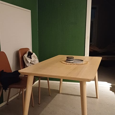 Selger bord og to stoler fra IKEA
