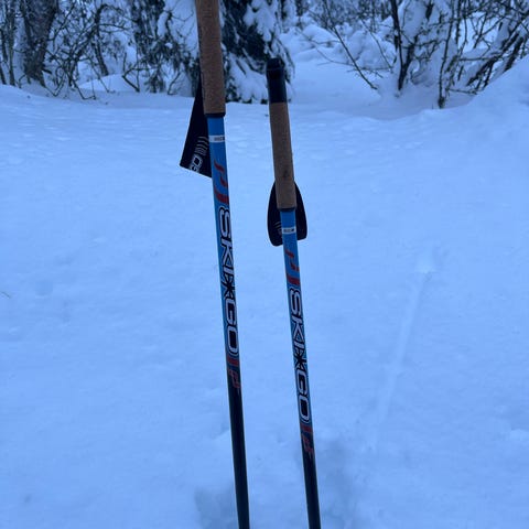 Skistavene har ergonomiske håndtak med justerbare håndstropper for god støtte.