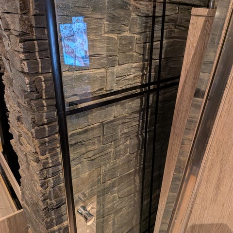Hall 36N veggfliser i strukturert glass. Flisene har et rillet, gjennomskinnelig uttrykk som slipper inn lys samtidig som de skjermer for innsyn. Egnet til bruk på vegg i for eksempel gang, bad eller andre oppholdsrom der man ønsker en kombinasjon av lysinnslipp og skjerming.