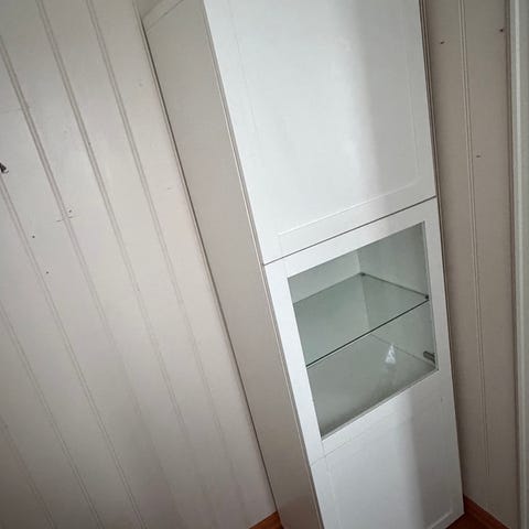 Fra Ikea. 2 glass skap og 2 bokhyller. Selges samlet 600 kr